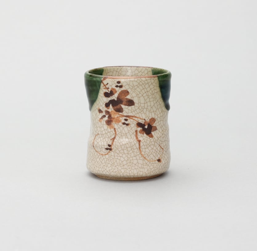 安土桃山時代に戦国武将、『古田織部』が初めて作ったことで『古田織部』の名前から織部と名前が付けられました。400年経った今でも当時の作り方とほぼ変わらず轆轤(ろくろ)によって作られています。細かい貫入(かんにゅう)と織部の深い緑色が特徴です。