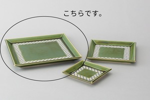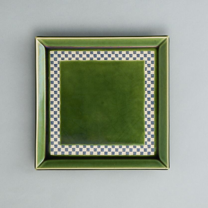 【231】 織部市松角皿(大) 縦幅21cm 横幅21cm 高さ2.3cm 520g 織部 江風陶苑