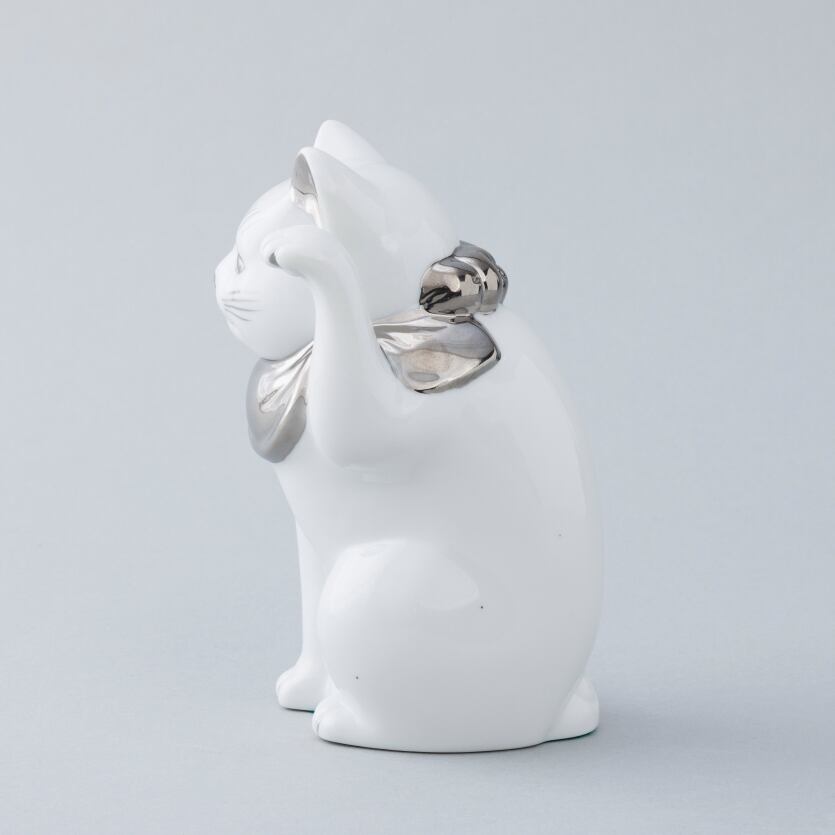 【219】 江戸猫(中)プラチナ左 縦幅cm 横幅cm 高さ19cm 400g クラフト スズカ