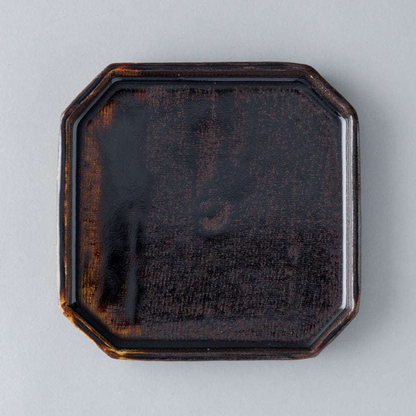 【565】 古瀬戸17.5cm撫角皿 縦幅17.5cm 横幅17.5cm 高さ2.2cm g 古瀬戸 山長陶苑